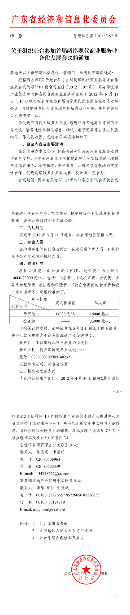 关于组织赴台参加首届两岸现代商业服务业合作发展会议的通知