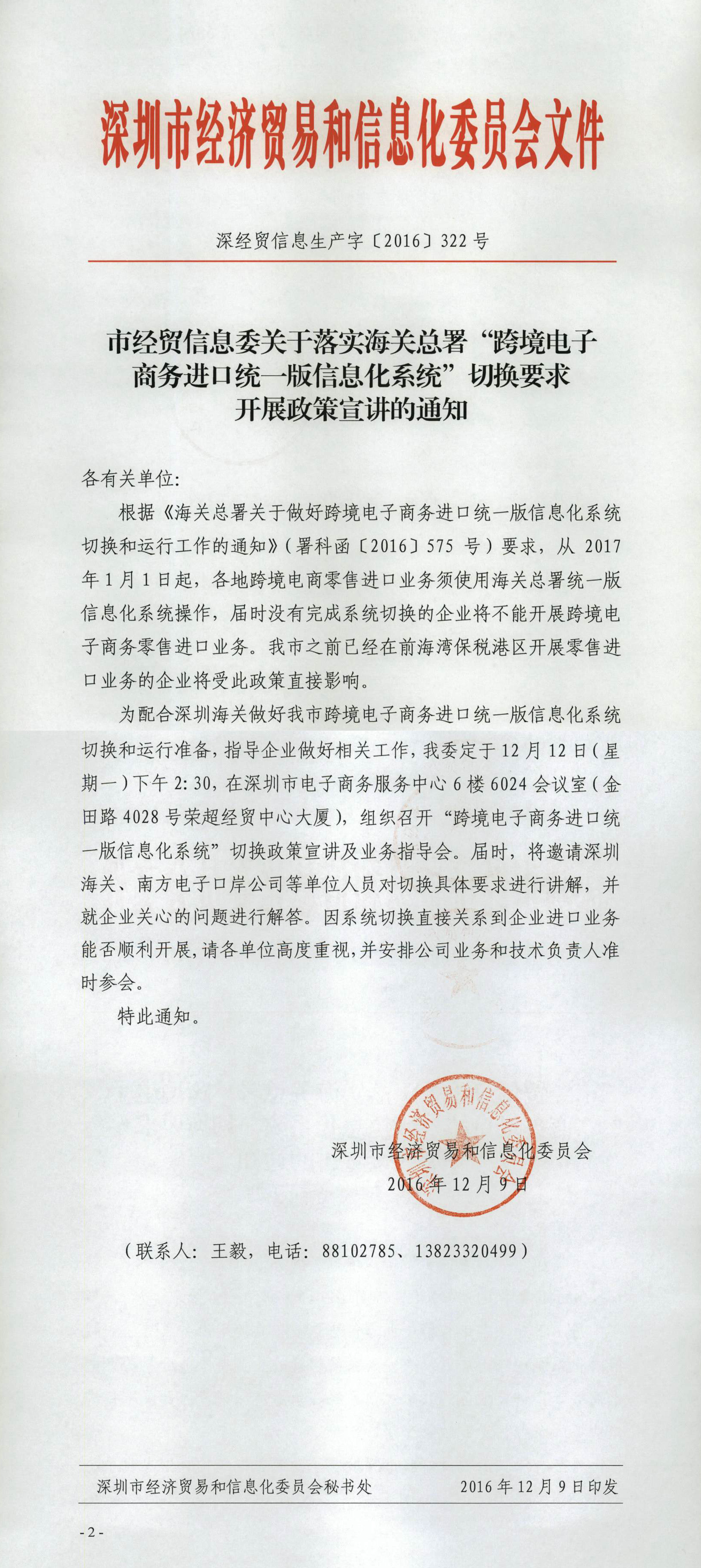 市经贸信息委关于落实海关总署“跨境电子商务进口统一版信息化系统”切换要求开展政策宣讲的通知