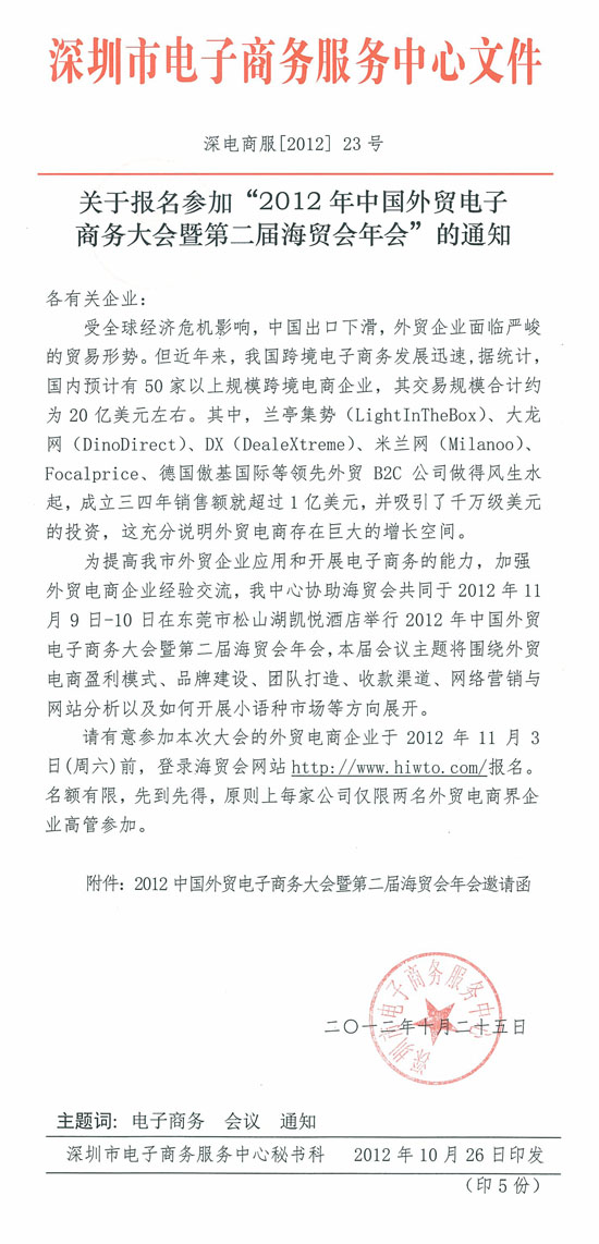 关于报名参加“2012年中国外贸电子商务大会暨第二届海贸会年会”的通知