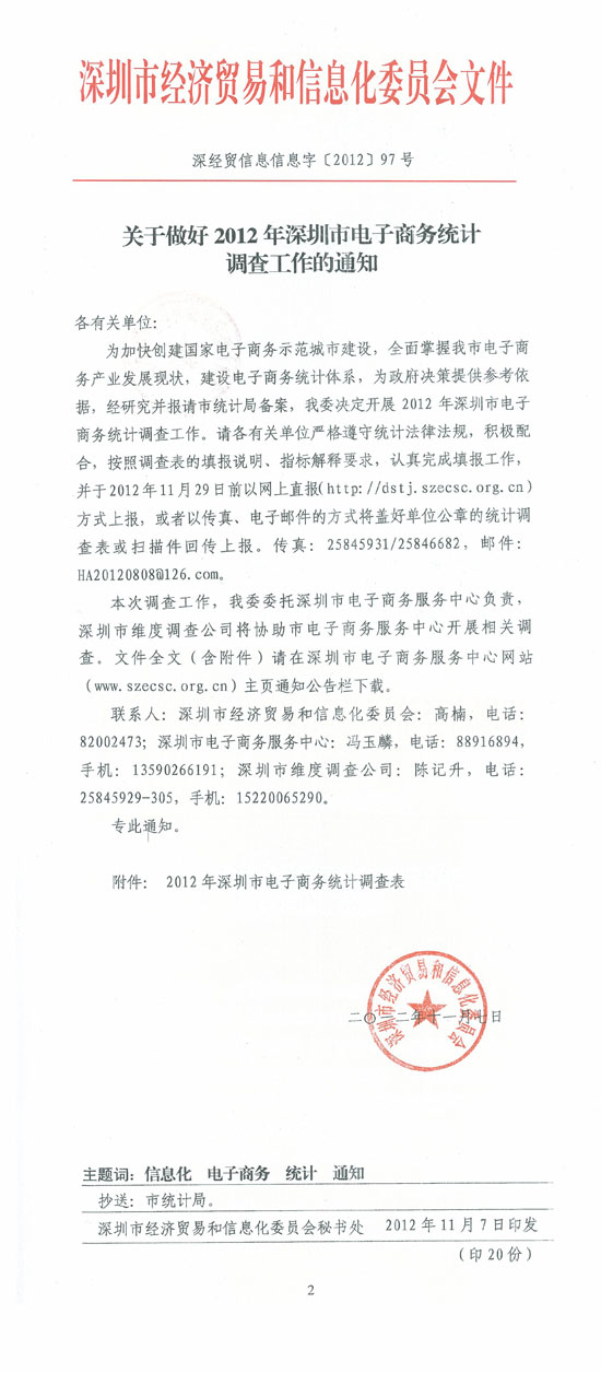 关于做好2012年深圳市电子商务统计调查工作的通知