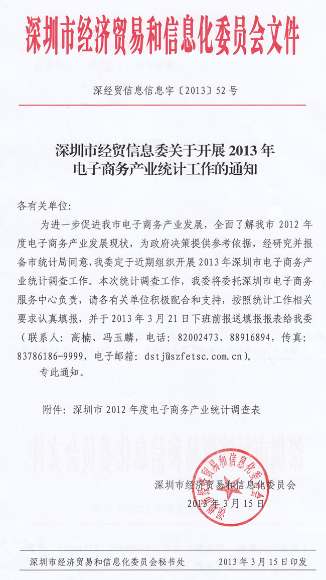 深圳市经贸信息委关于开展2013年电子商务产业统计工作的通知〉〉〉