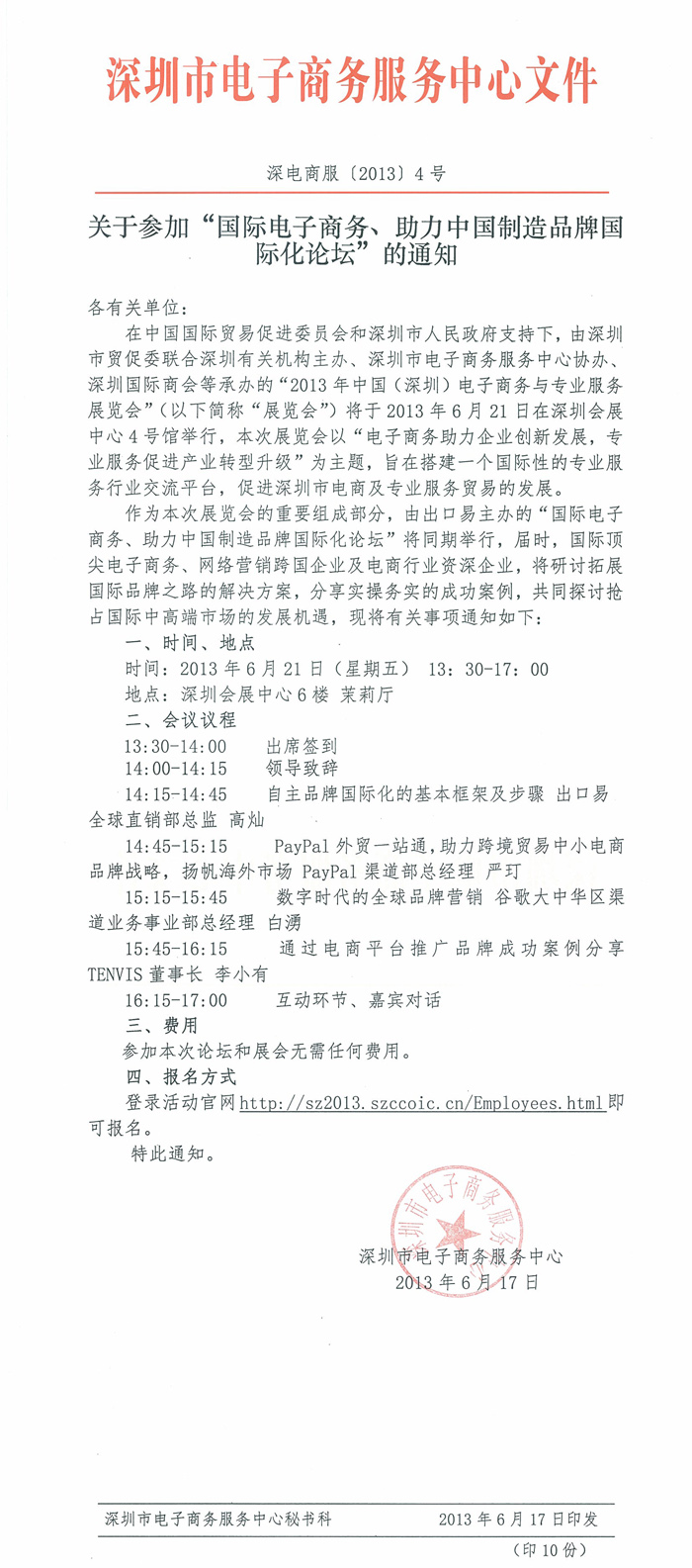 关于参加“国际电子商务、助力中国制造品牌国际化论坛”的通知