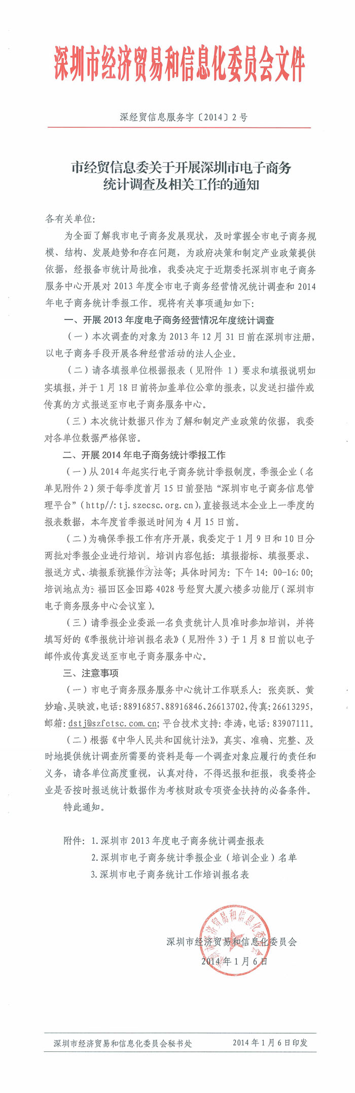 市经贸信息委关于开展深圳市电子商务统计调查及相关工作的通知