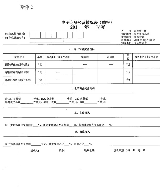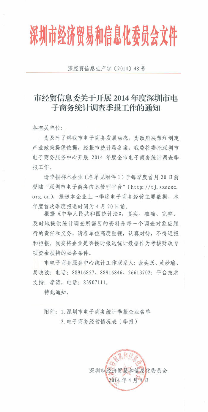 市经贸信息委关于开展2014年度深圳市电子商务统计调查季报工作的通知