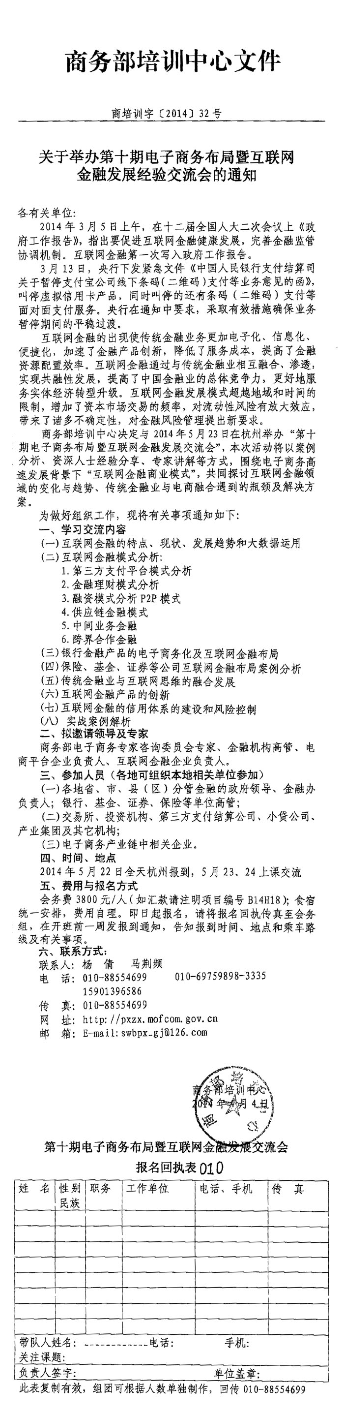 商务部培训中心关于举办第十期电子商务布局暨互联网金融发展经验交流会的通知