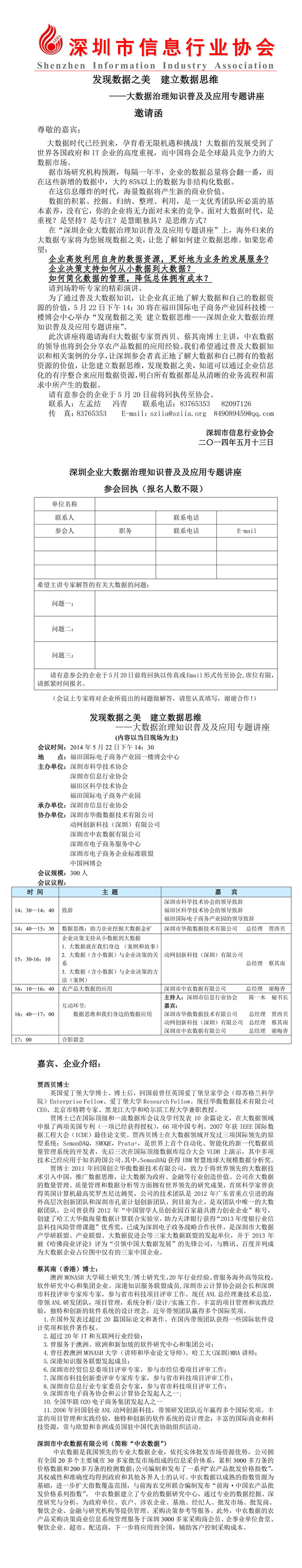转发:发现数据之美 建立数据思维——大数据治理知识普及及应用专题讲座邀请函