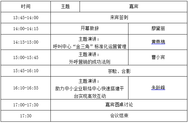 本次论坛主要定位在新兴中小企业呼叫中心普遍问题的交流和辅导,从平台需求搭建、现场运营管理和产品宣传销售等维度,帮助大家解决起步初期流程管理、现场管理、业务质量监控、员工招聘、绩效与成本控制、团队文化建设、微型培训体系搭建等丰富、实用的管理内容。协会将邀请行业资深专家、学者、以及来自优秀呼叫中心企业一线的管理人员,结合行业最新资讯和自身宝贵的管理经验精彩分享,我们期望能做到有针对性、有解决方法、“接地气”、可操作。