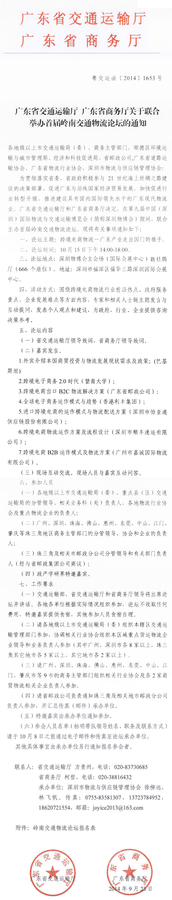 转发:广东省交通运输厅 广东省商务厅关于联合举办首届岭南交通物流论坛的通知