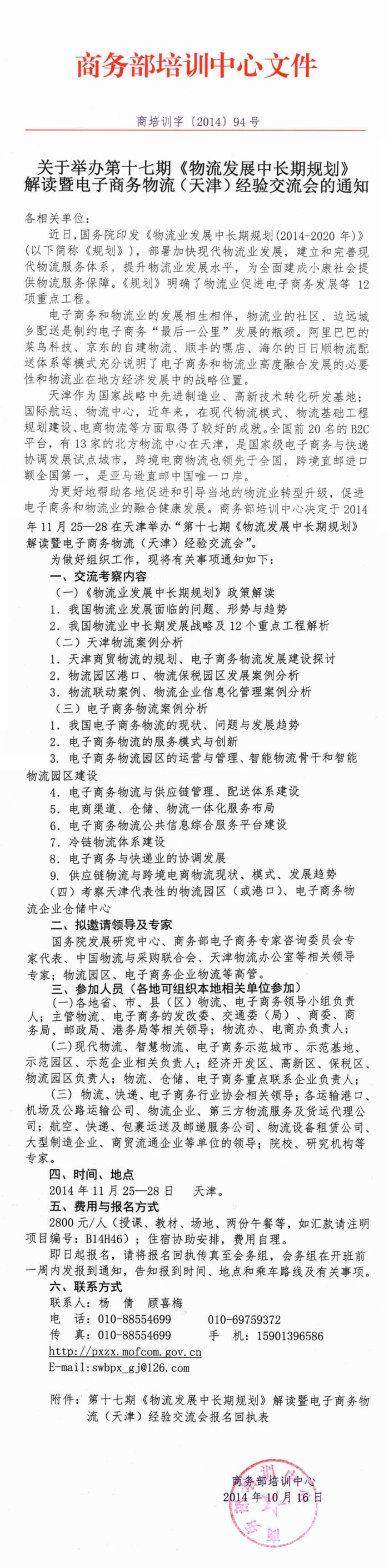 转发:关于举办第十七期《物流发展中长期规划》解读暨电子商务物流(天津)经验交流会的通知