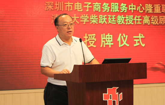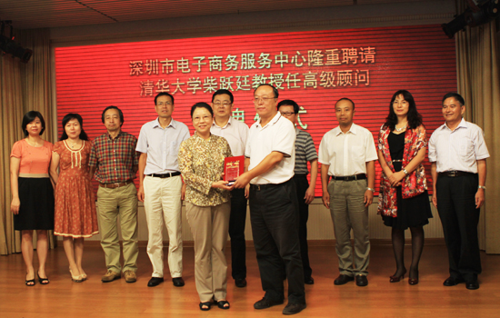 为促进深圳市电子商务服务中心战略发展,更好地发挥政企对接、产业联合协作的职能,市电商中心特聘请“国家电子商务示范城市”创建工作专家咨询委员会专家组组长、清华大学柴跃廷教授任高级顾问,授聘仪式于8月28日上午在市电商中心六楼会议室隆重举行。市经贸信息委贾兴东副主任,市经贸信息委生产服务业处张立仁处长,市经贸信息委信息化推进处黄爱萍处长、赵广文副处长及市对外经济贸易服务中心董恩科副主任、徐静副主任、李莲副主任等领导出席了仪式。