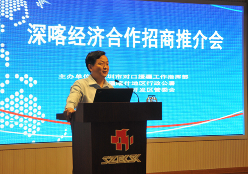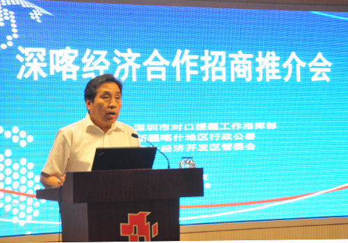 深圳市政府副秘书长朱廷峰在会上指出,喀什是我国西部边陲的重镇,“五口通八国,一路连欧亚”,是古丝绸之路经过的重要的城市,也是欧亚文明和文化的交汇点,在我国与中亚、南亚的合作当中扮演了非常重要的角色。融入喀什经济发展大潮,是深圳“服务全国,反哺全国”的需要,也是深圳对口支援祖国边疆义不容辞的义务和责任。喀什具备丰富的资源和地域优势,发展潜力巨大,深喀两地经济的互补性,为两市产业合作提供了广阔的空间。