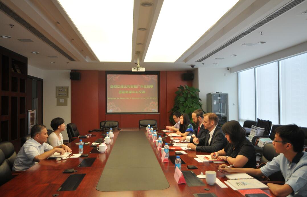 6月15日,比利时驻广州总领事蓝可祥先生一行访问我中心,总领馆有意与在电商领域有较大发展潜力的机构建立往来与合作,并与深圳电子商务企业开展长期的合作交流。随行访问我中心的还有比利时驻广州总领事馆瓦隆地区商务处马观岳先生、比利时驻上海总领事馆布鲁塞尔外国投资与贸易促进局刘晶女士、比利时驻广州总领事馆法兰德斯大区商务处曾广斌先生、比利时驻广州总领事馆瓦隆大区商务处刘苗苗女士以及深圳市驻欧洲经贸代表处首席代表周旭一行六人。