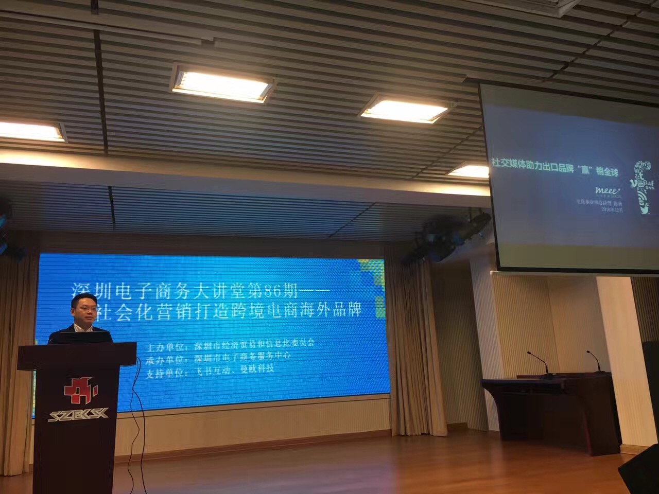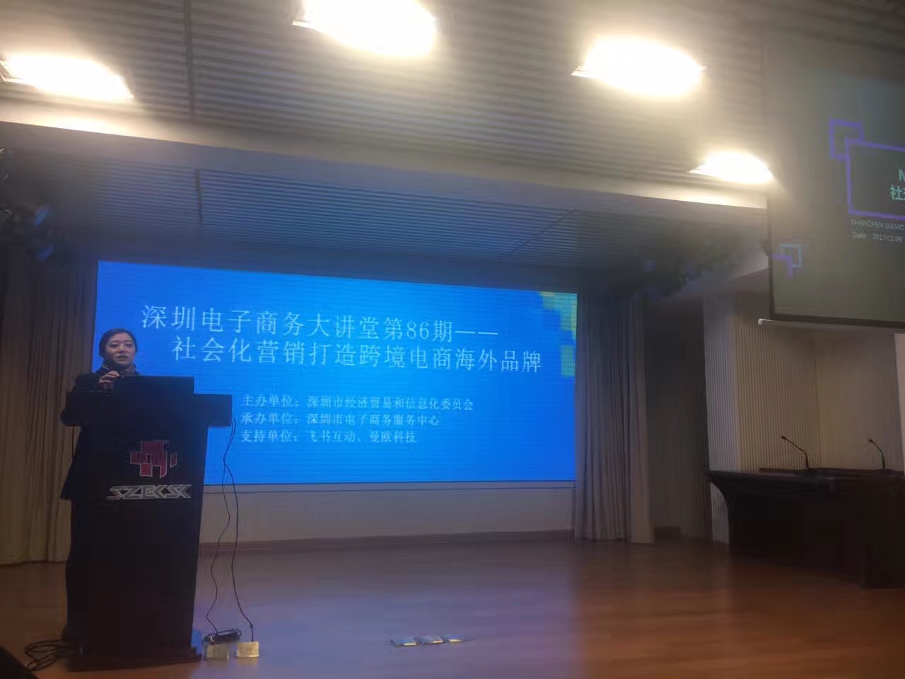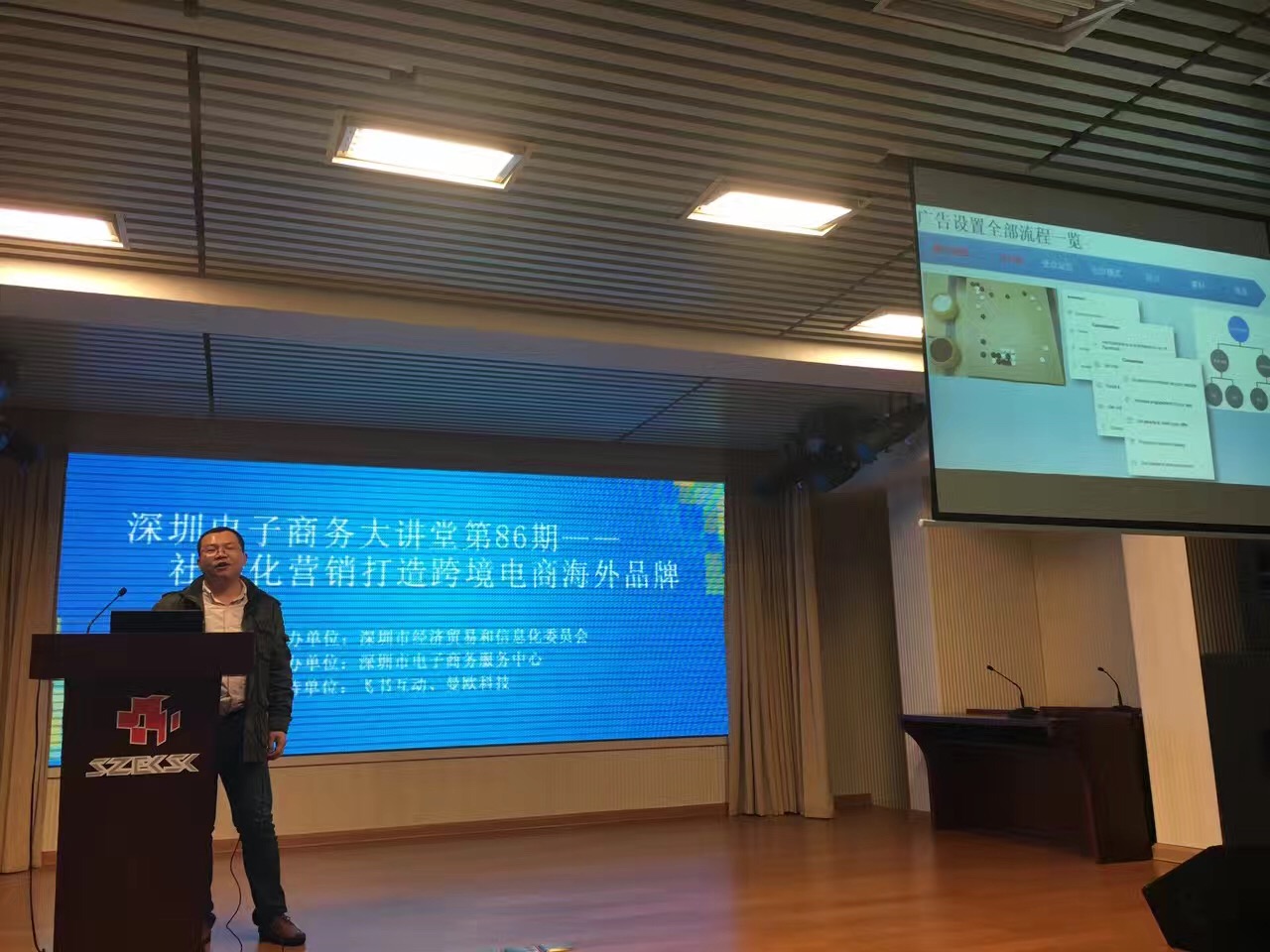 2017年1月19日,为推动我市跨境电子商务产业发展,帮助企业从“中国制造”转型“中国品牌”,深圳市电子商务服务中心在市经济贸易和信息化委员会的指导下,联合Facebook、飞书互动等知名企业,共同举办深圳电子商务大讲堂“社会化营销打造跨境电商海外品牌”讲座。作为开年第一期大讲堂活动,企业人气甚高,活动也邀请到全球跨境电子商务领域知名企业高管、行业实战家等行业重量级嘉宾,从Facebook平台现状、如何利用红人开展社会化营销、成功卖家实战经验分享等方面,为我市企业把握“社会化营销打造海外品牌”提供转型新思路和转型资源。
