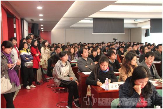 2011年1月7日全天,由市科工贸信委主办,深圳市电子商务服务中心承办的电子商务大讲堂之“在线外贸探索之旅”大型专题讲座成功举办。敦煌网创始人,现任敦煌网CEO王树彤、一达通总经理魏强等四位专家就在线贸易与传统贸易的差异及前景、在线外贸发展趋势及传统企业如何走好电商之路、海外市场分析及互联网推广策略等内容进行了介绍。市科工贸信委高林副主任致辞,服务业处陈剑山处长主持了本次讲座。各区科技局负责同志、行业协会代表和我市外贸企业代表200多人参加了讲座。