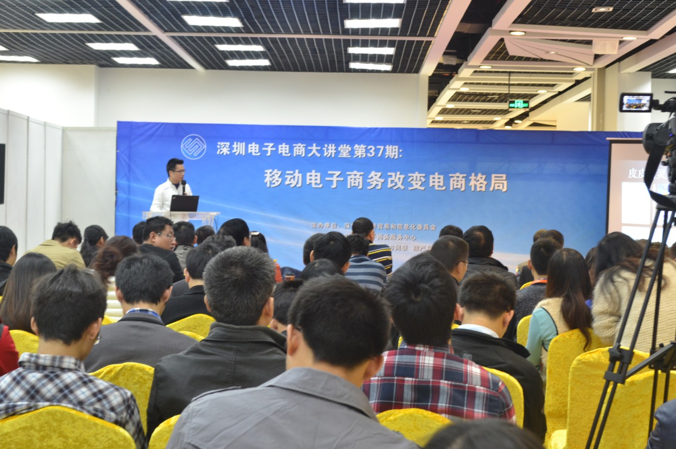 在中国互联网协会和龙岗区政府的指导和支持下,2013(第三届)中国网商网货交易会隆重启幕,深圳市电子商务服务中心主办的第37期电子商务大讲堂“移动电子商务改变电商格局”论坛作为本次交易会的重要活动,于11月29日在深圳华南城华利嘉国际电子交易中心成功举行,论坛邀请了微博微信服务商皮皮精灵、羽博电源、腾讯微生活、微聚俱、倍诺科技、深商e天下等行业知名企业高管,与逾百位企业代表就如何开展移动电子商务展开经验交流。