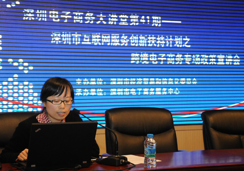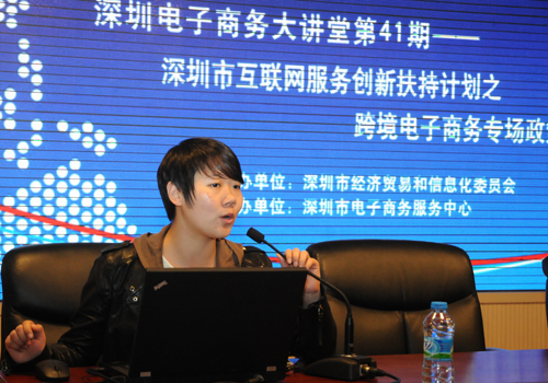 为帮助我市跨境电子商务企业做好2014年度互联网产业发展专项资金扶持计划的申报工作,介绍国家最新跨境电商出口税收政策,深圳市电子商务服务中心举办了深圳电子商务大讲堂第41期“深圳互联网服务创新扶持计划之跨境电子商务专场政策宣讲会”,市经贸信息委生产服务业处、市国税局、众信电子商务交易保障促进中心、前海湾保税物流园等单位的有关人员,为跨境电子商务企业详细解读有关政策,指导资助项目申报。
