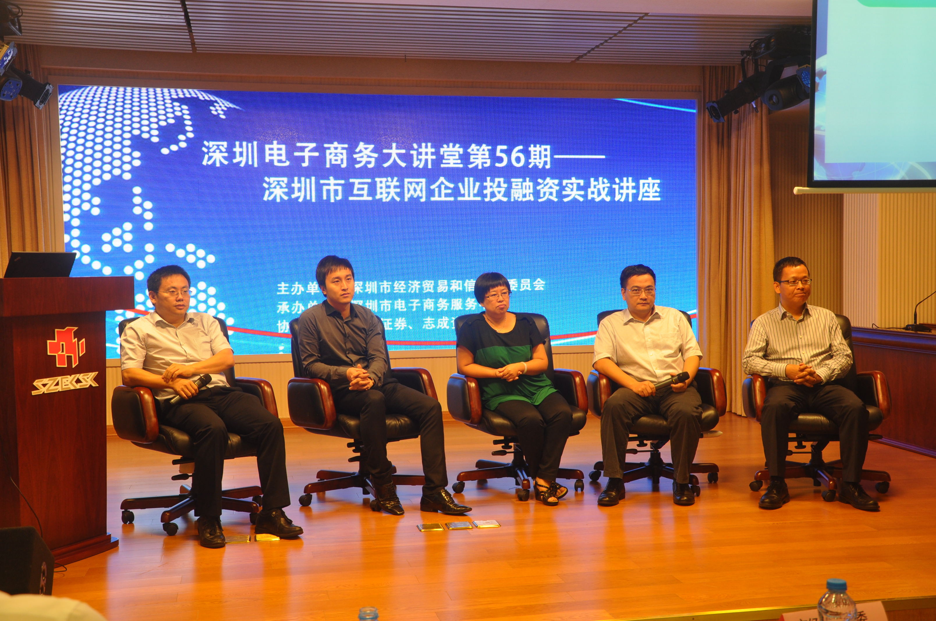 为进一步促进我市互联网及电子商务领域的新业态、新模式创新发展,深圳市经济贸易和信息化委员会(以下简称经贸信息委)每年通过互联网产业发展专项资金对具有独创性或示范效应的互联网新业态项目给予财政资助。在今年项目评审中,市经贸信息委创新性地通过政府资助带动社会资源投入,引导和鼓励风投机构对接和投资我市互联网和电子商务新兴领域。为此,市经贸信息委、深圳市电子商务服务中心特别举办互联网及电子商务企业资本对接系列活动,首场活动于9月29日下午在金田路经贸中心6楼成功举行。活动邀请国信证券、启赋资本、志成资本、浦发银行等投资机构高管,为参与申报新业态项目的企业高层管理人员及有意了解、接触资本机构的广大互联网创新项目企业负责人讲解融资流程、投资策略,详细解析互联网企业上市、并购等成功案例,并与企业开展面对面诊断和项目对接。